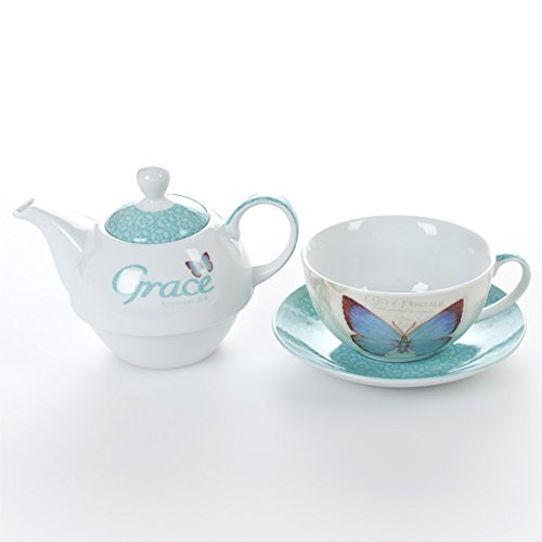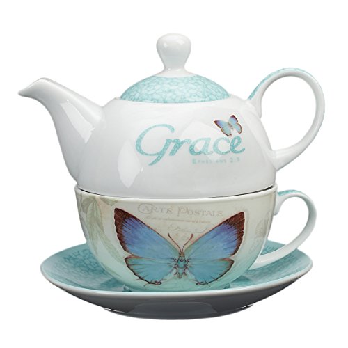 The Botanic Butterfly Blessings \"Grace\" Tea-for-A single Set will delight gardeners and butterfly lovers alike. Featuring the artwork of Jane Shasky with her fresh botanicals embellished with sophisticated calligraphy fashioned as a \"carte postale\" serving as a background for a signature blue butterfly. The appealingly shaped and made individual-sized teapot that stacks into its personal teacup will delight anybody. Reference to Ephesians is featured as is the butterfly identified when you have reached the bottom of your cup. The teapot lid has a hole for steam release. Present prepared in a fairly hat-box-style gift box. Find far more Botanic Butterfly Blessings Assortment items in Bible Covers, Kitchen & Home and Stationery.
