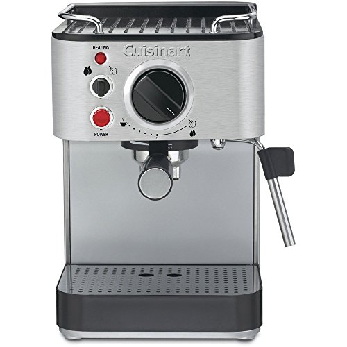 Factory Refurbished with real Cuisinart 90 Day guarantee Do caf your way. This compact, 15-bar espresso and cappuccino maker is the best addition to your countertop, letting you take pleasure in the daring taste of Italy without ever leaving your kitchen. Produced to brew one or two cups, the professional-grade die cast and stainless steel housing is handsome and incredibly durable. Attributes: Espresso maker with 15 bars of strain for excellent coffee drinks Brews one to 2 cups from either ground espresso or pods 53-ounce removable reservoir porta-filter holder cup-warming plate Steam nozzle frothing cup removable drip tray tamping instrument included Specs: Energy output: 1000 wattsPump or steam: PumpMaximum pump pressure: 15 barsColor: Stainless steelWater tank capacity: six-5/eight cupsManufacturer: CuisinartCountry of manufacture: ChinaBuilt-in tamper: NoBuilt-in water filter: NoTimer: NoCoffeemaker attached: NoRemovable water tank: YesBuilt-in grinder: NoSteam wand: YesEspresso pod adapter: YesProgrammable brew quantities/cup sizes: 1 or two cupsCup warming plate: YesSelf-priming pump: YesAutomatic: NoHeight: twelve-5/9 inchesLength: 11 inchesDepth: 8-one/5 inches &nb...