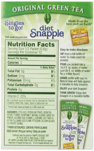 Diet Snapple Singles To Go Green Tea, 6-Count, Pack of 12 4.2 out of 5 based on 48 ratings. 48 user reviews