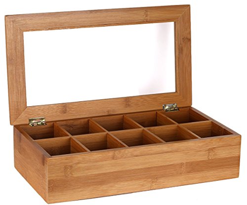 Estilo Bamboo Tea Storage Box, 10 Equally Divided Compartments