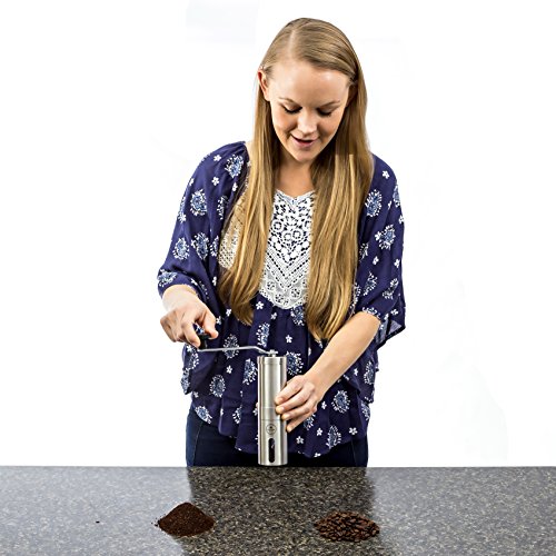 Most Consistent Hand Coffee Grinder - Ceramic Burr Grinder made with Professional Grade Stainless Steel. Manual Coffee Grinder - Perfect Coffee Grinder for French Press, Espresso or as a Spice Grinder or Herb Grinder.