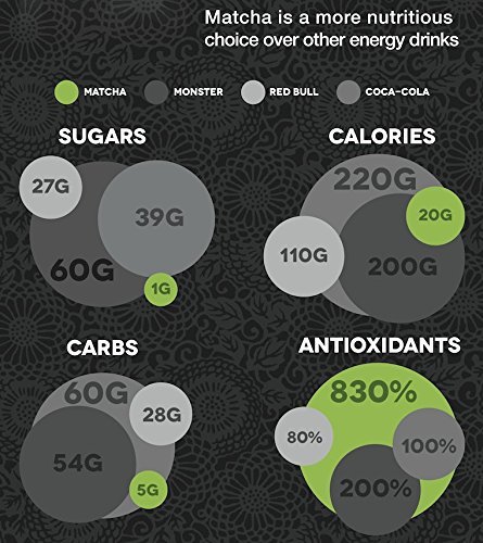 - POTENT ANTIOXIDANT! Since Matcha contains the whole tea leaf, it offers more antioxidants that green tea brews and even blueberries. Give your body a health boost with every delicious sip.