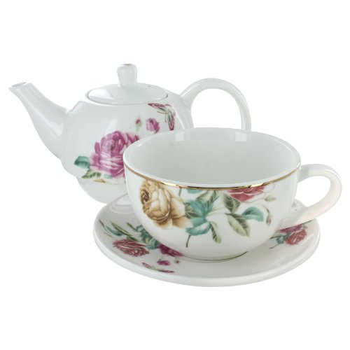 This tea for 1 is created of porcelain and will be a charming addition to your tea time. Featuring gold trim, this tea for one is decorated on white porcelain with a mauve, yellow and red floral and butterfly pattern. This tea for one particular also involves a saucer. The Summertime Breeze porcelain pattern is available in a tea set and in a deluxe tea set featuring dessert plates. Not advised for microwave use due to the gold trim.
