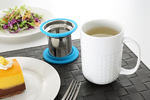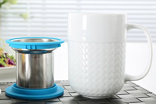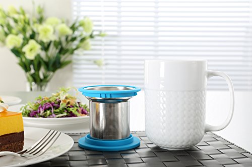 Premium High quality Porcelain Mug with Stainless Steel Infuser and Silicone Lid Consider your Tea expertise to the Subsequent Degree! - Are you bored with the identical outdated vogue mugs and strainers? - Or are you frustrated with the mug lids that doesn\'t stay firm? - Why buy each and every item individually and shell out far more? - Or are you searching for a best present for your loved ones? Purchase Right now FOR THESE Fantastic Advantages: - PREMIUM SUPER WHITE CERAMIC MUG to guarantee the extended sturdiness - With straightforward to hold fashionable curve mug manage - Microwave and Dish Washer safe - Higher Quality STAINLESS STEEL INFUSER with blue silicone edges provides excellent grip and superior filtration even for the finest particles - Classic Blue SILICONE LID that firmly seals the cup can also be flipped to perform as a helpful drip tray for your infuser - An excellent health and fitness spouse for your Excess weight Reduction TEA, LOOSE LEAF TEA, GREEN TEA, DETOX TEA, HERBAL TEA or even COFFEE - Tends to make Best Present SET for your loved ones. Our shoppers are in love with the \"Peach RS\" premium high quality merchandise and you are backed by our Fulfillment guarantee also You have our unique pricing only for a limited time period. So Hurry! Click Buy Now! WARNING: INFUSER IS Created OF STAINLESS STEEL. DO NOT MICROWAVE IT